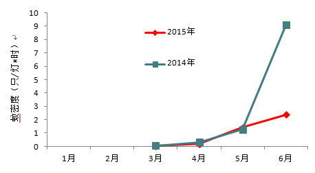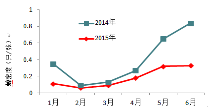 4  全省2014年和20151-6月平均蟑密度季节消长趋势