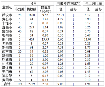 2、各市(州)蚊密度监测结果