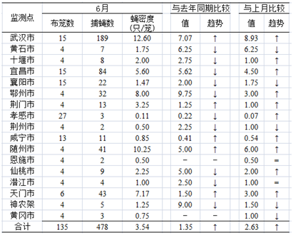 湖北省病媒生物监测简报(2015年6月)