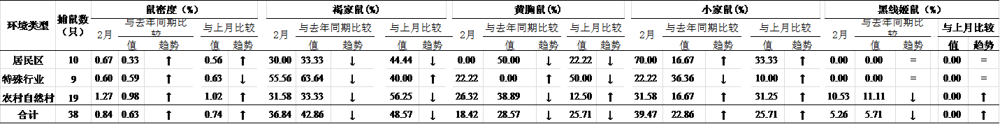 根据我省病媒生物监测方案,12月、1月和2月可以不开展蚊类、蝇类监测,故在12月、2月和2月的病媒生物监测简报中只有鼠和蟑的监测数据分析。