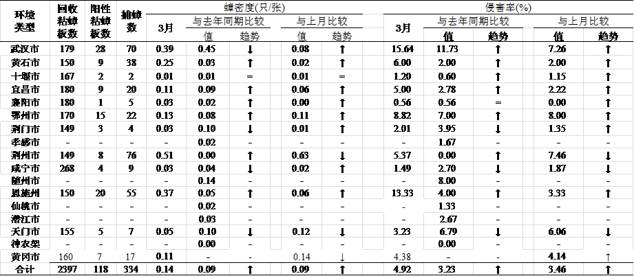 为保证湖北省病媒生物监测工作的顺利开展,有效应对各种虫媒传染病的发生和流行,按照《湖北省病媒生物监测方案》(2013版)要求,全省17个市州开设病媒生物监测点,现将湖北省2016年3月各市(州)开展病媒生物监测情况汇报如下: