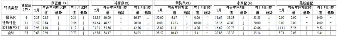 根据我省病媒生物监测方案,12月、1月和2月可以不开展蚊类、蝇类监测,故在12月、1月和2月的病媒生物监测简报中只有鼠和蟑的监测数据分析。