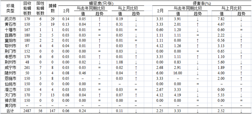 为保证湖北省病媒生物监测工作的顺利开展,有效应对各种虫媒传染病的发生和流行,按照《湖北省病媒生物监测方案》(2013版)要求,全省17个市州开设了病媒生物监测点,已经逐渐开展了病媒生物监测。现将湖北省2015年2月各市(州)开展病媒生物监测情况汇报如下: