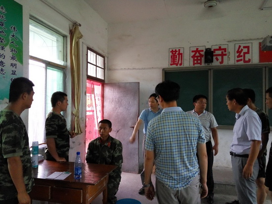 督导组在武警部队驻地查看,指导开展灭蚊工作