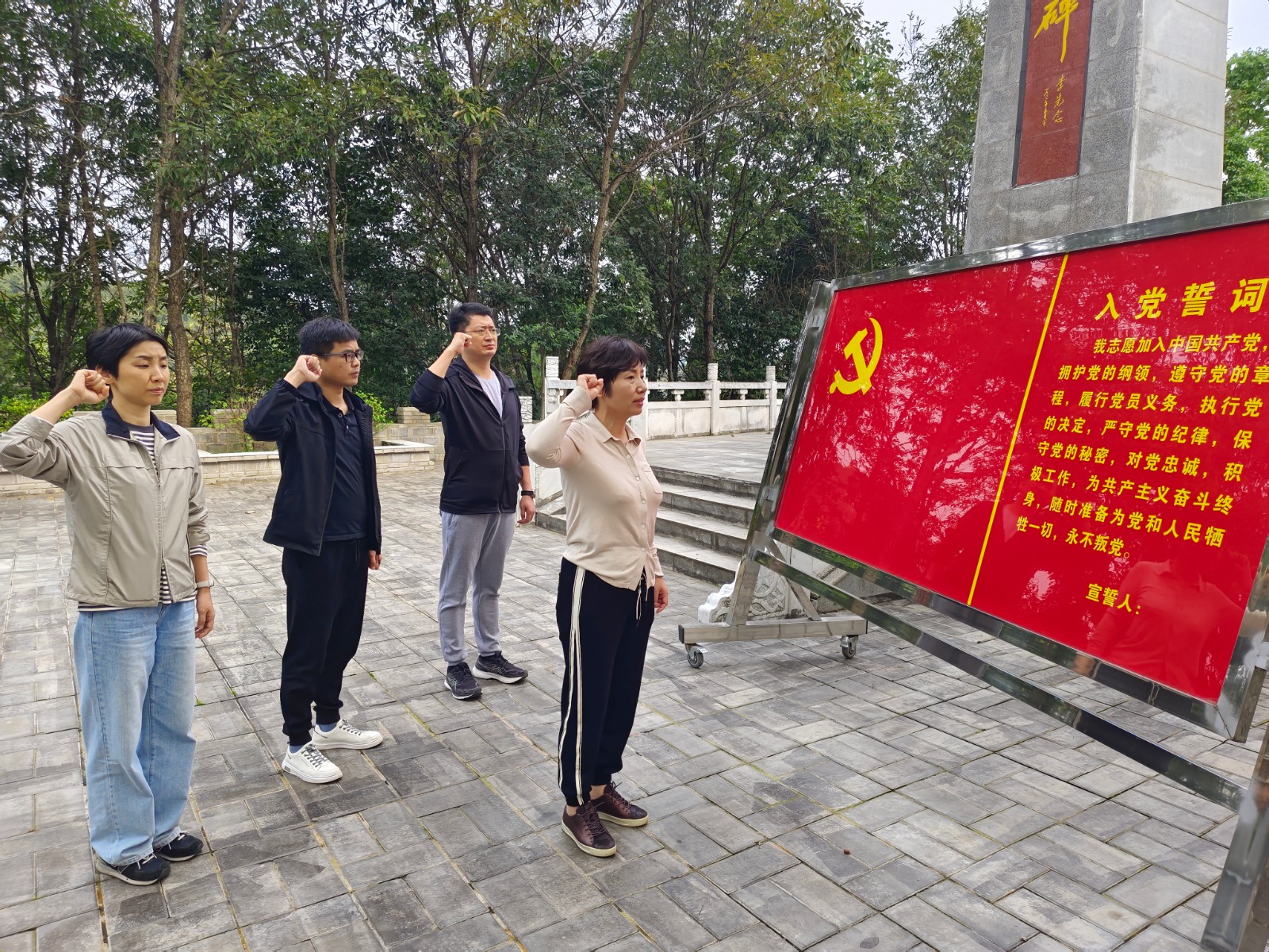 随后大家来到纪念碑前缅怀英烈,向革命烈士敬献花篮并三鞠躬,在支部书记陈红缨同志的带领下,生物办全体党员和入党积极分子列队肃立,高举右拳,面对着鲜红的党旗庄严宣誓,重温入党誓词。