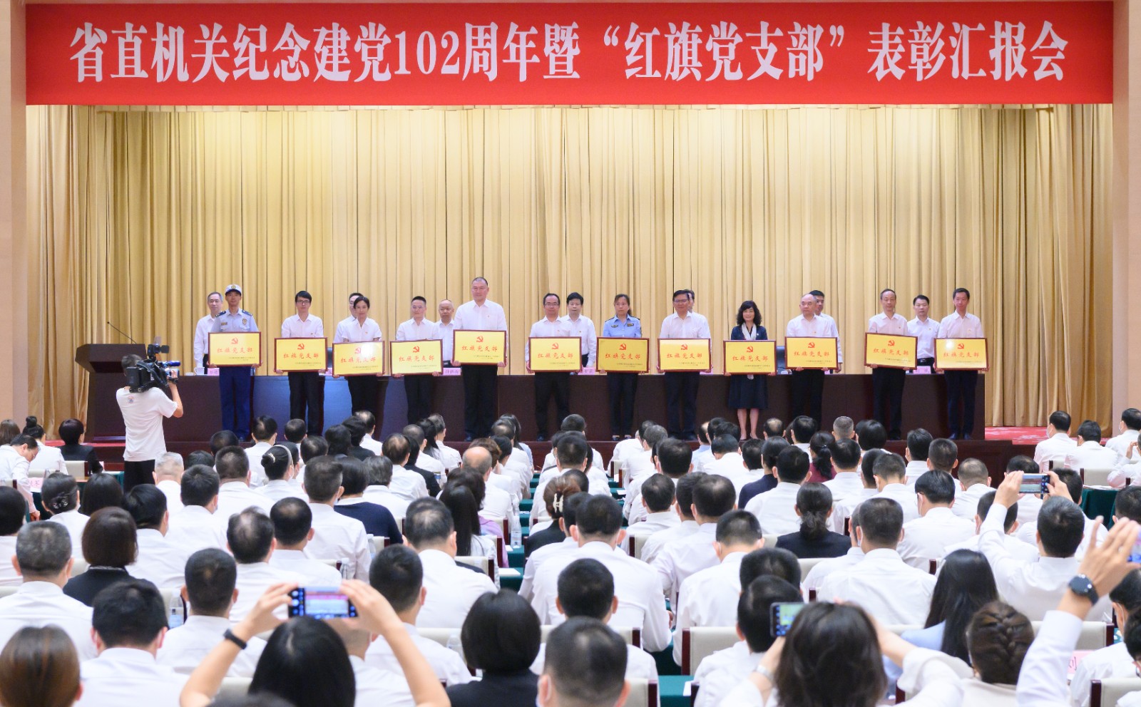 2023年6月26日,省委直属机关工委在东湖宾馆召开省直机关庆祝建党102周年暨“红旗党支部”表彰汇报会。省委直属机关工委对省纪委监委办公厅党支部等215个“红旗党支部”予以通报表扬,省疾控中心检验所党支部作为全省卫生健康系统基层党支部唯一代表和省委直属机关工委上台领奖党支部代表之一(24个)接受颁奖