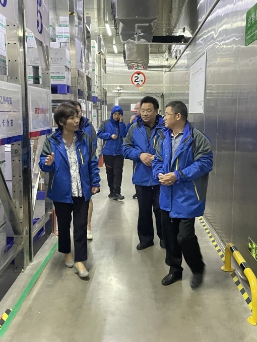 朱洪波书记一行首先现场查看了生物办疫苗冷链建设和管理情况,并仔细询问了疫苗接收、储存和配送等相关工作细节,要求做好每个环节的管理,环环相扣,做到冷链过程闭环管理,确保疫苗冷链安全。