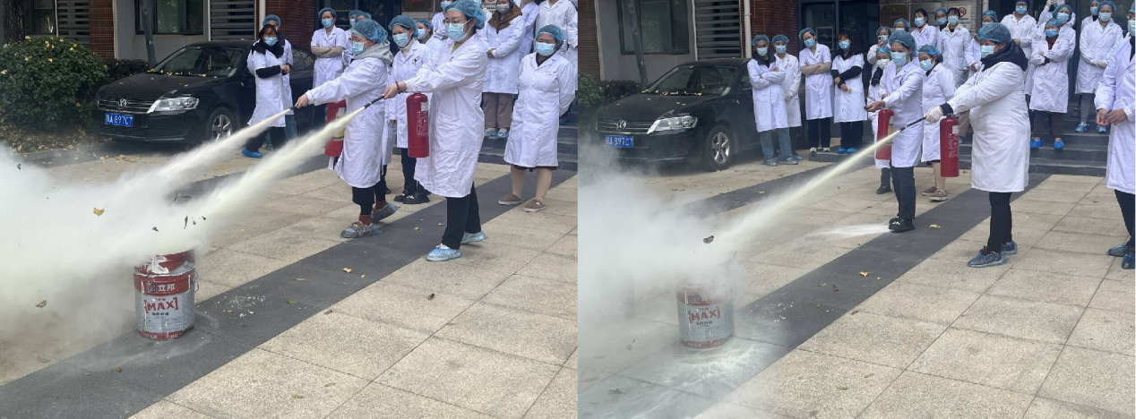 应急疏散演练结束后,由消防维保部专员胡圣乾为安评中心全体职工讲解室内消防栓和灭火器的使用细则及注意事项,最后在A栋一楼室外设立火灾小现场,开展灭火器使用实践操作,2023年度安评所新进职工有序手持灭火器,进行了实践操作。