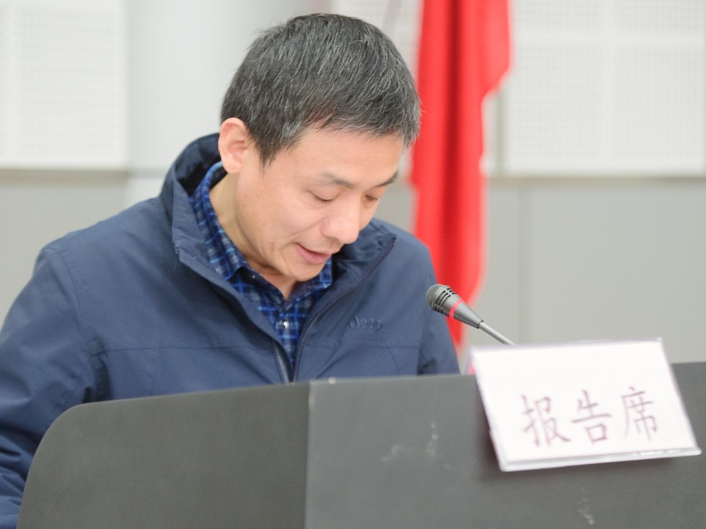 提案审查委员会何钢处长作《中心(院)第四届职代会第六次会议提案办理情况的报告》和《中心(院)第四届职代会第七次会议提案审查情况的报告》
